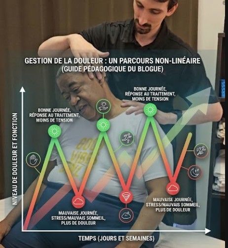 Après une période de douleur prolongée, le corps développe des mécanismes de défense. C'est ce que nous appelons la mémoire de protection. Le système nerveux reste sur le qui-vive. En réadaptation, notre rôle est de "rééduquer" ce système par une exposition graduelle au mouvement, afin de lui prouver que l'activité est sécuritaire.